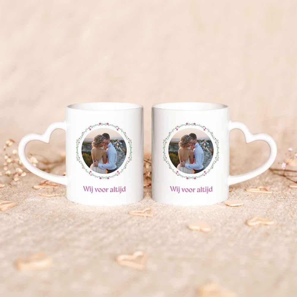 • Gepersonaliseerde mok bloemenkrans met foto en tekst