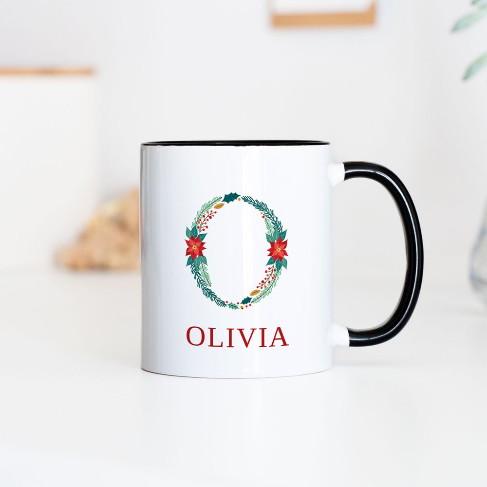Mooi kerstcadeau voor de keuken en/of kantoor: Onze prachtige, kerstachtige mok met monogram, uiteraard personaliseerbaar (met naam of de beginletter ervan), gemaakt van keramiek en simpelweg perfect voor elk warm kerstdrankje.