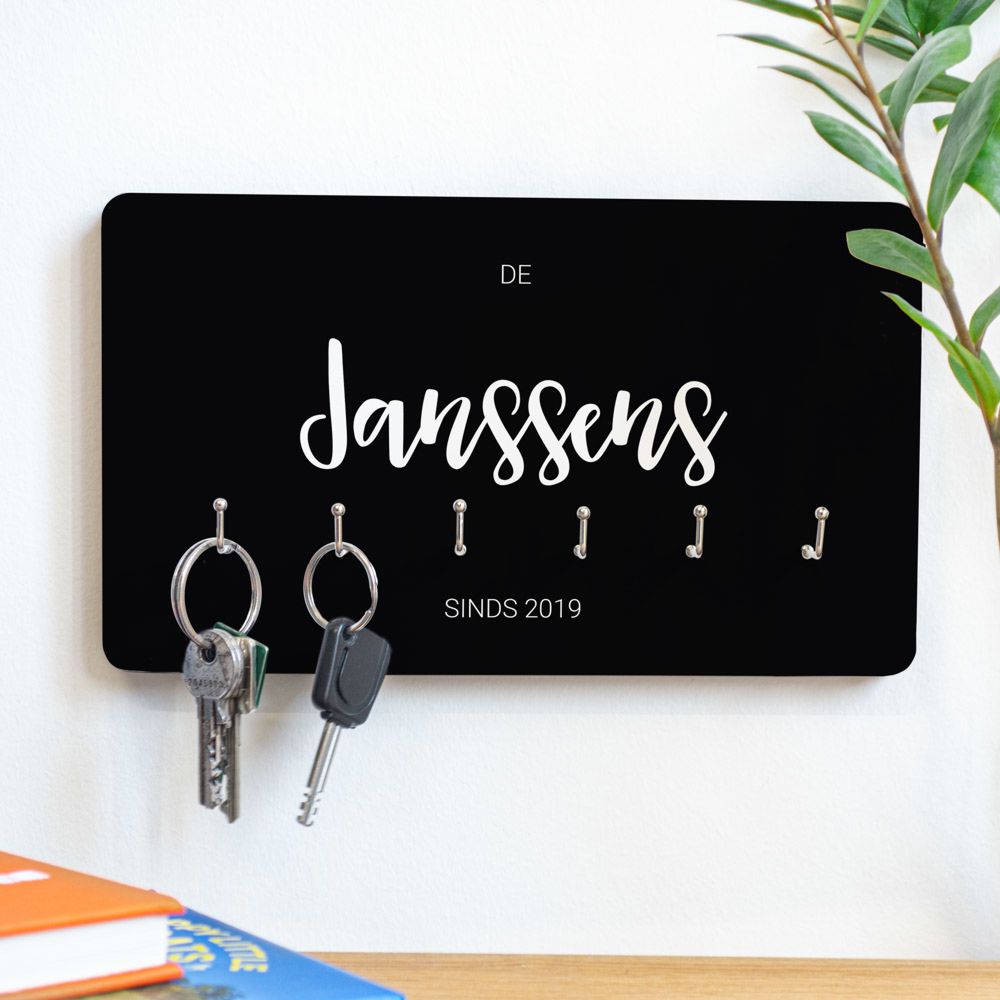 bent. In elk gezin of gemeenschap heeft u natuurlijk uw eigen sleutelbord nodig. Personaliseerbaar. Dat betekent: op naam. Zodat iedereen weet wiens sleutel er hangt en omdat het in principe goed is om je naam te zien als elegante en of nuttig woonaccessoire. Dus papa’s, zonen, zussen waar wacht je nog op ? Hup hup snel bestellen maar. De sleutels willen immers ook fatsoenlijk ondergebracht worden.