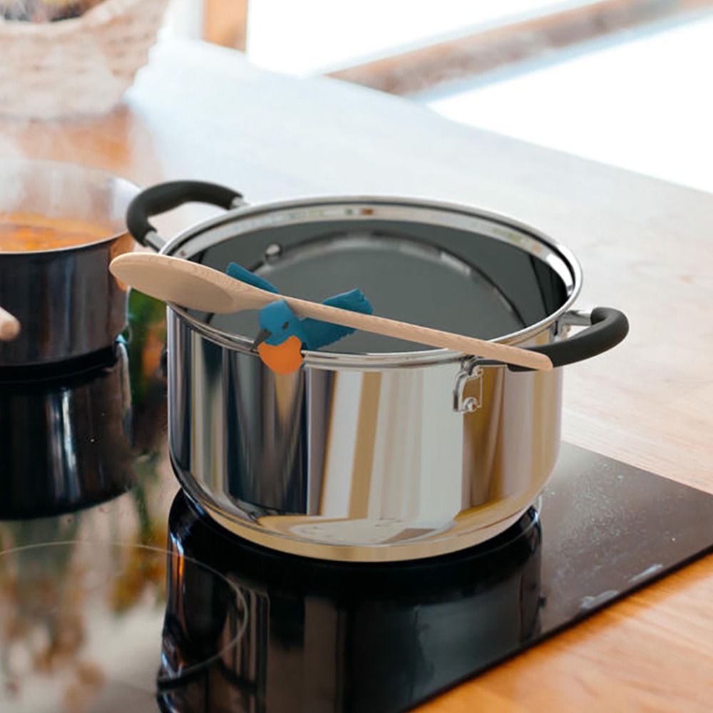 Ons kleine vogeltje fluit misschien niet, maar is in de keuken een echte held. Als pan- en lepelhouder voorkomt het dat water overkookt en dat je lepel zonder doel op het aanrecht belandt.