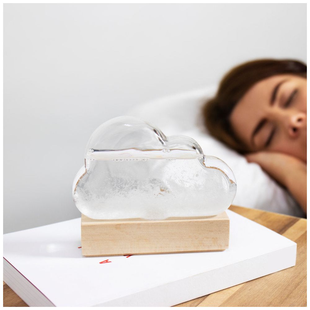 Met dezelfde middelen als die dappere ontdekkingsreizigers van weleer kun je nu hetzelfde doen, zonder je natuurlijk bloot te stellen aan een stormachtige zee: het enige wat je hoeft te doen is ons weerstation van stormglas in de vorm van een wolk op de vensterbank te zetten. En na een beetje gewenning weet je heel precies of het gaat regenen of schijnen, of er een storm op komst is of dat alles rustig blijft (wij vinden het leuker dan een piepend digitaal weerbericht of de gebruikelijke saaie apps).